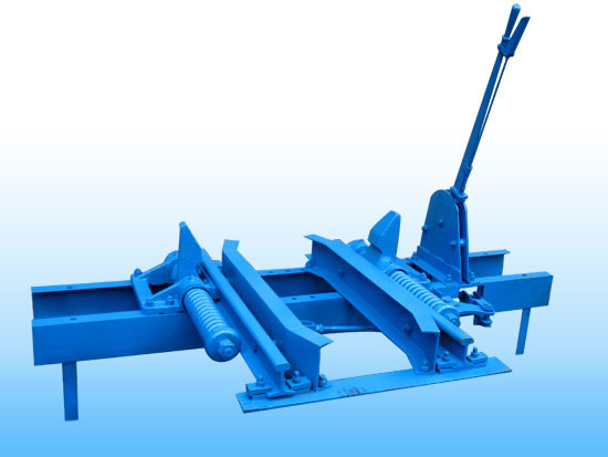 此阻車器為阻輪式阻車器,是礦井車場中將運行的礦車停止在某一個固定點的限位裝置,主要由一對阻爪和彈簧緩沖裝置等組成。阻爪打開時,礦車可自由通過;阻爪關(guān)閉時即阻擋住礦車車輪,使礦車停止前進(jìn)。